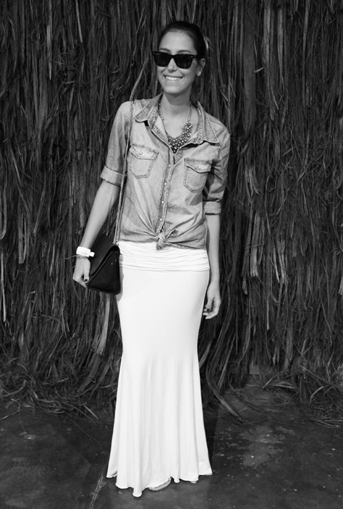 Para o segundo dia de SPFW eu resolvi optar pelo conforto, afinal, nada melhor do que montar um look com flat, ainda mais essa da Luiza Barcelos que é linda. Foi uma produção básica, mas ao mesmo tempo cool. Saia longa – feita pela minha costureira + camisa jeans H&M + bag Tríplice Boutique, nos acessórios escolhi meu colar dourado + óculos Rayban. E aí, curtiram?