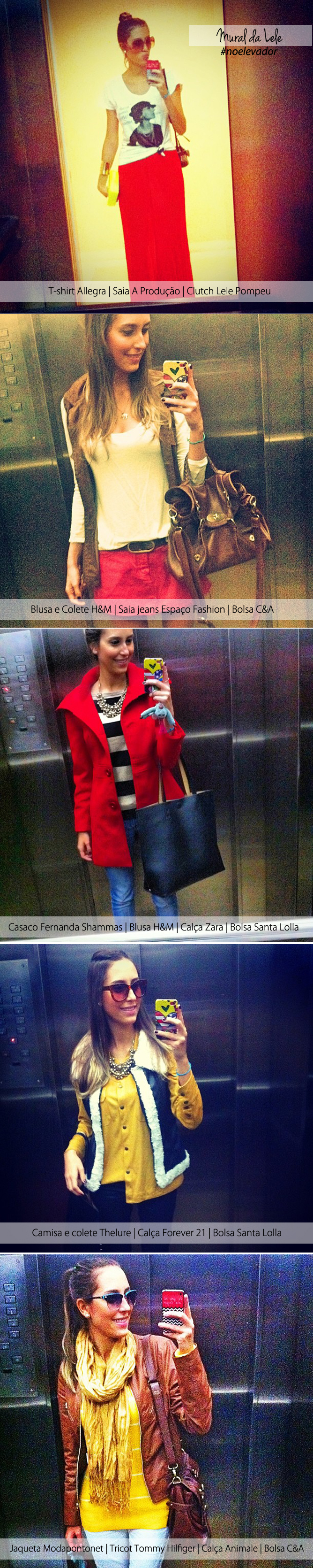 Mural da Lele de hoje é #noelevador e como sabem, são looks que usei e postei no meu instagram @lelepompeu. As produções de hoje, variam das mais descoladas/cool até as mais casuais, clássicas. Pra quem me pediu looks meia-estação – já que o nosso inverno não está fazendo tão frio – taí ótimas opções para se inspirar. Olhem só: